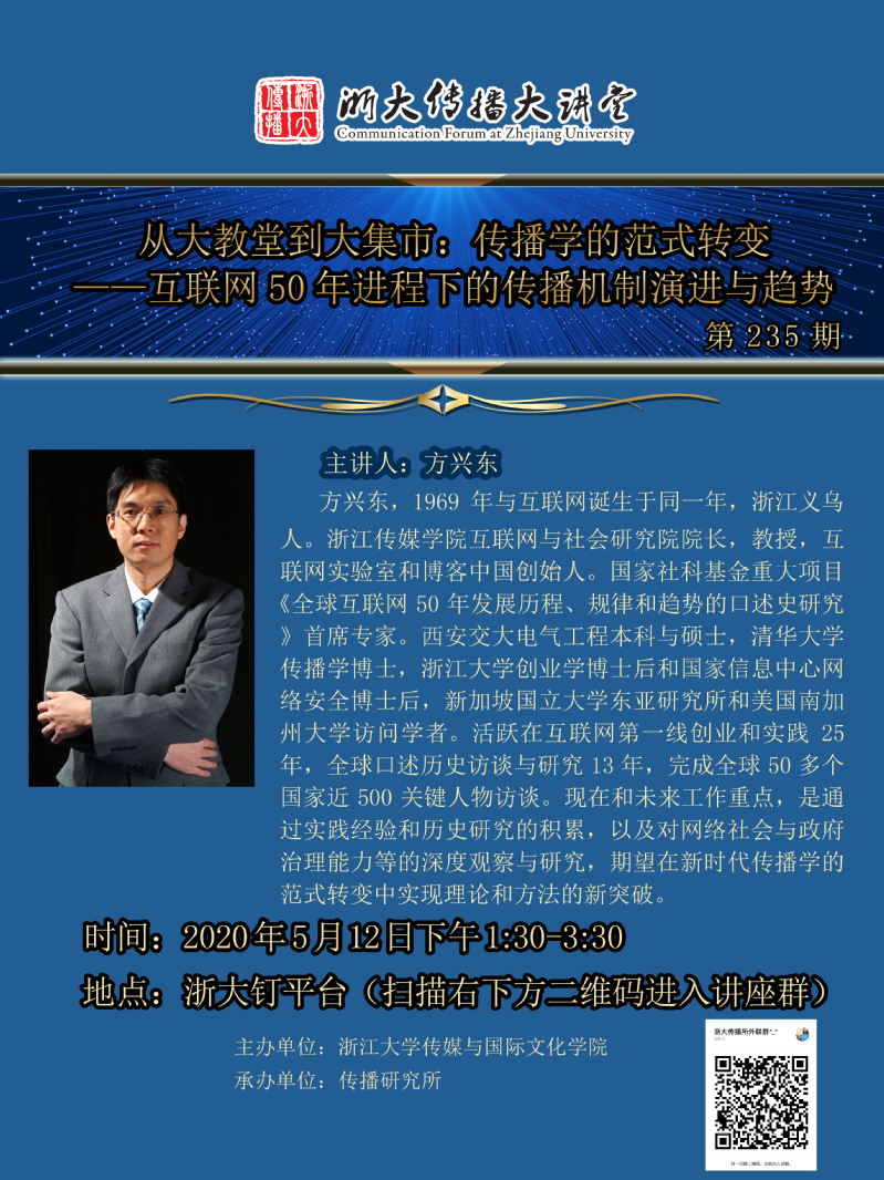 浙大传播大讲堂第235期 从大教堂到大集市:传播学的范式转变--互联网50年进程下的传播机制演进与趋势