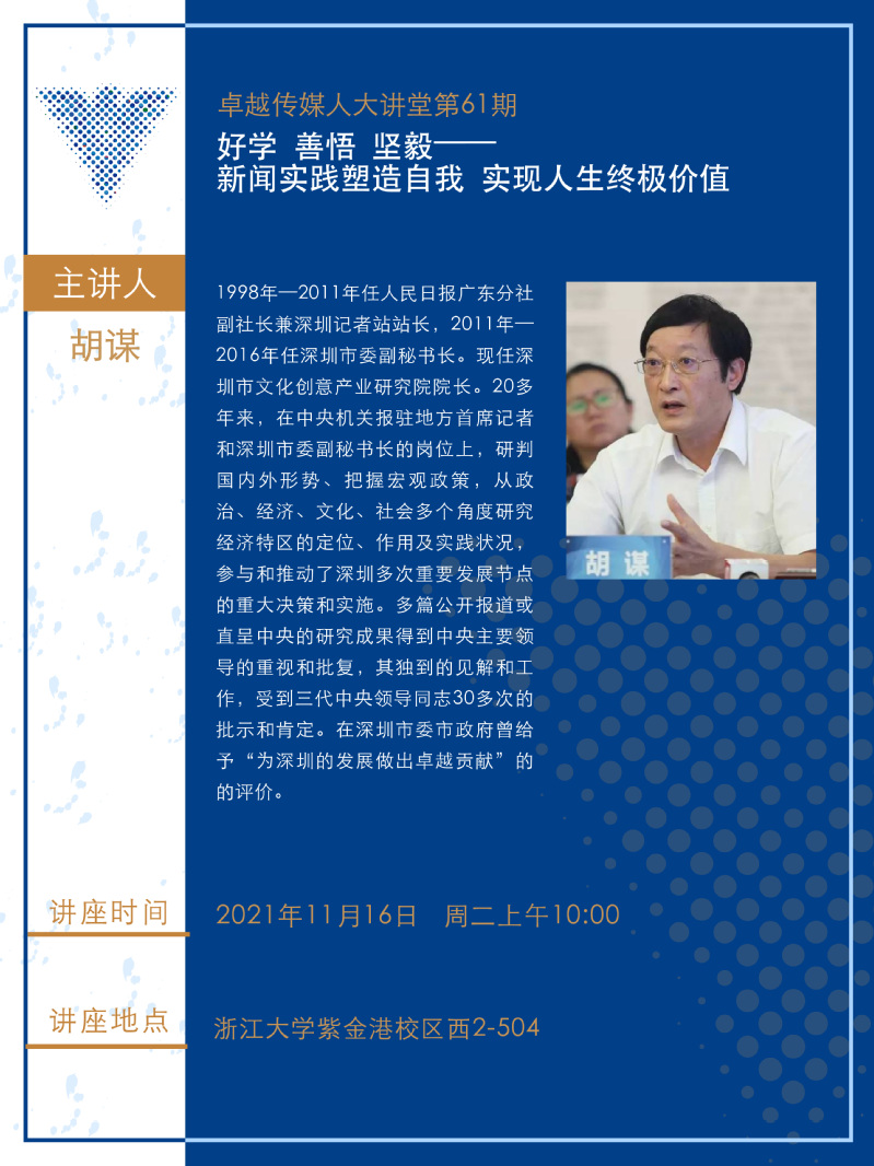 卓越传媒人大讲堂第61期:好学 善悟 坚毅——新闻实践塑造自我 实现人生终极价值