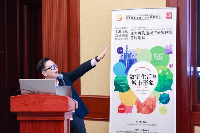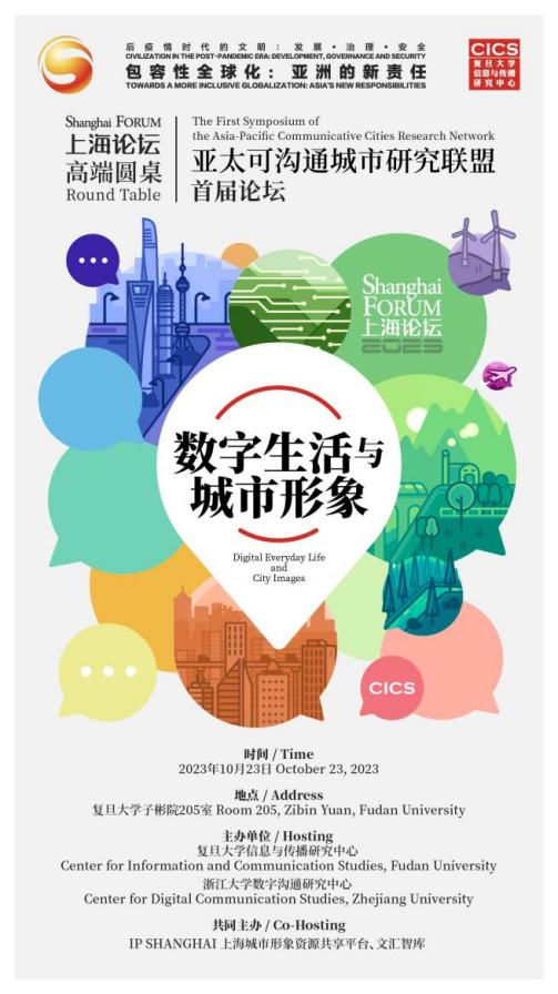 2023年10月23日,“上海论坛2023”高端圆桌暨亚太可沟通城市研究联盟首届论坛在复旦大学举行。本次论坛由复旦大学信息与传播研究中心、哔咔漫画 数字沟通研究中心与IP SHANGHAI上海城市形象资源共享平台、文汇智库共同主办,旨在从新闻传播学视角回应习近平“人类命运共同体”理念,邀请亚太地区顶尖高校的城市传播领域著名专家,立足数字媒介技术建构亚太地区城市传播新型网络以及城市形象传播方式变革的新经验,聚焦“数字生活与城市形象”,探索数字时代城市形象塑造的新路径。复旦大学信息与传播研究中心主任孙玮教授、学术委员会副主席陆晔教授、副主任潘霁教授,哔咔漫画 文科资深教授、数字沟通研究中心主任黄旦教授,上海交通大学媒体与传播学院副院长徐剑教授,澳大利亚国家荣誉院士、墨尔本大学文化与传播学院Scott McQuire教授,新加坡国立大学文化研究中心主任Audrey Yue教授,韩国延世大学城市社会空间信息研究中心主任Yong-Chan Kim教授等海内外学者出席了本次会议。