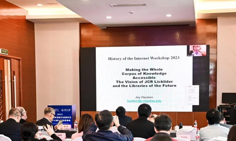 美国科学史和计算机通信(网络)研究专家杰·豪本(Jay Hauben)作主题发言。他以2005年信息社会世界高峰会议突尼斯阶段会议(WSIS)(第二阶段会议)上的一篇论文为引,论文描述了计算机技术如何促进研究和学术工作获取人类的全部知识,其中涉及范内瓦·布什(Vannevar Bush)和约瑟夫·利克莱德(J. C. R. Licklider)提出的设想。利克莱德所提出的“未来图书馆”发展愿景为早期互联网发展提供了指导原则,利克莱德的著作之所以仍是一个重要的研究领域,是因为其中包含了指导早期互联网发展的主要原则和愿景,这正是互联网蓬勃发展的重要推动力。他以海虫和海洋细菌之间的“共生”为例,具象化地描述互联网的发展关系,此外,还引用了利克莱德的诸多观点来佐证未来互联网发展的愿景:在未来,人脑将与计算机紧密结合在一起,由此产生的工作关系将革新人脑原有的思考方式。同时,我们也应关注到互联网发展中带来的一些问题,如果只有一部分人有机会享受“智力放大”的优势,网络可能会夸大知识机会的不连续性——这为当前全球互联网的数字鸿沟问题敲响警钟。