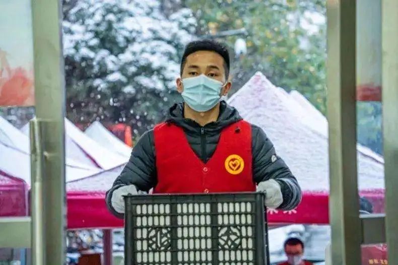 疫情期间正在给同学们运送物资的陈志远