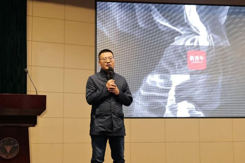新华社记者王龙分享了《理想·奋斗》新时代的青年故事。由王龙创办的《新青年》品牌用年轻人的方式去讲述年轻人的故事,致力于打造全球化的青年品牌。并将“忠于热爱,奋斗青春”送给大家,鼓励在座的同学们要有理想,有责任,有担当,未来是年轻人的,而新闻人永远年轻。