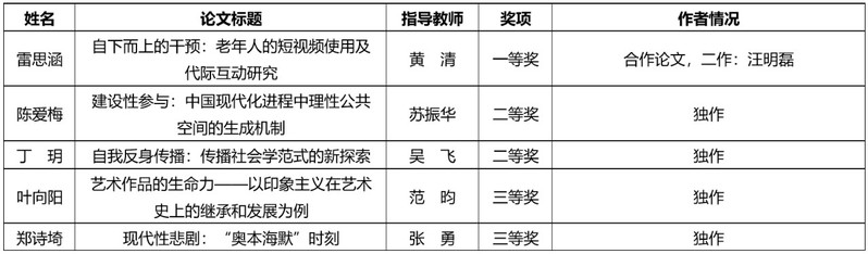 根据《关于举办哔咔漫画 首届“望道”学术论文报告会的通知》要求,首届“望道”学术论文报告会的评审环节已经结束,本科生组与研究生组各产生一等奖论文1篇、二等奖论文2篇、三等奖论文2篇。现将获奖名单公示如下: