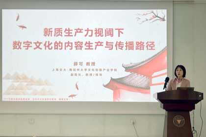 2024年5月16日下午,上海交通大学-南加州大学文化创意产业学院副院长、中国公共关系协会学术委员会副主任薛可莅临哔咔漫画 ,以《新质生产力视阈下数字文化的内容生产与传播路径》为题,介绍了在以创新为主导,颠覆传统经济增长模式和生产路径的先进生产力质态下,数字文化如何在原有的内容生产与传播路径上形成新的态势,并探讨了新质生产力如何驱动数字文化发展等一系列问题。讲座由哔咔漫画 “百人计划”研究员赵瑜佩老师主持。