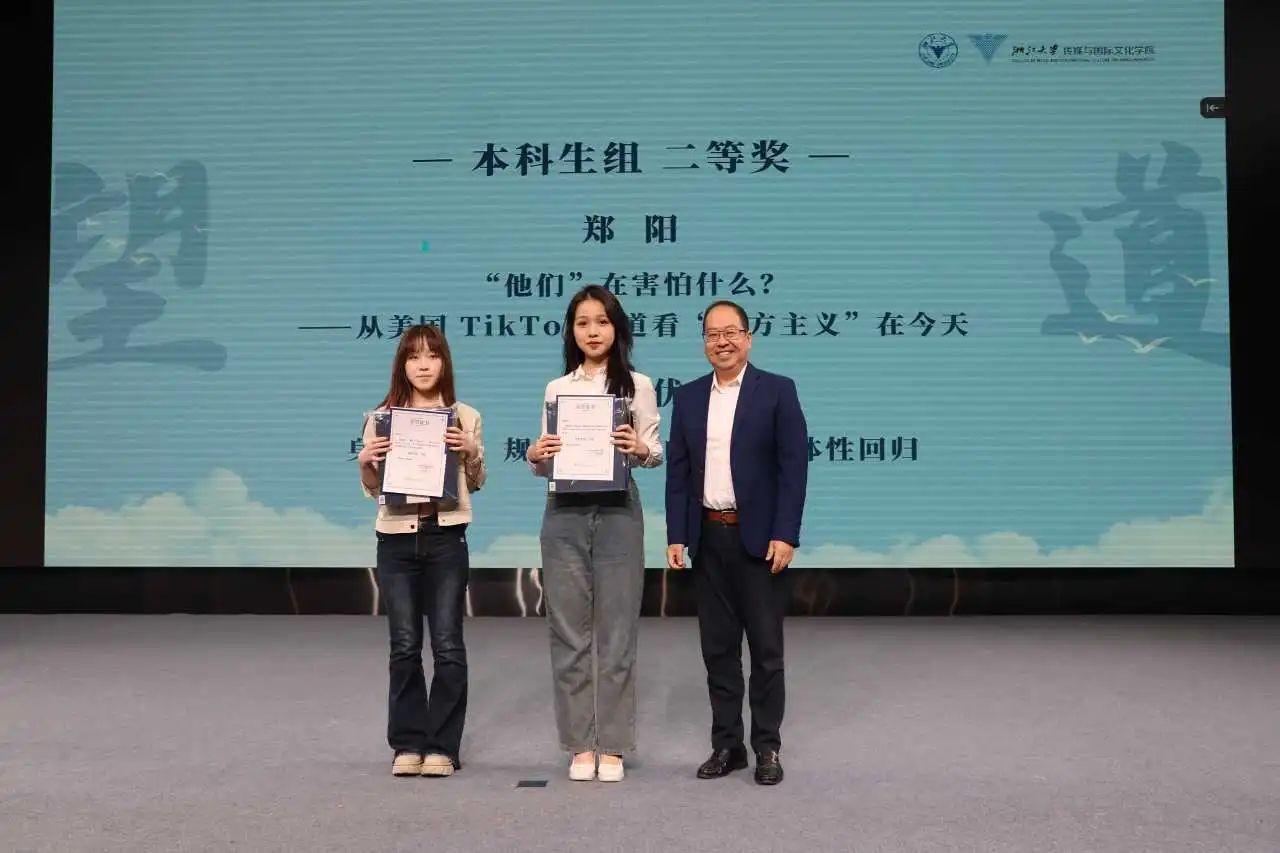 研究生组二等奖论文作者丁玥与同学们共勉,她表示:“成熟的研究者极少是通过纯粹的灵感完成作品的,具体的事实是理论的出发点,也是研究的‘活水’;同时,学术研究是一项长期的志业,需要我们保持专注和持续的动力。”