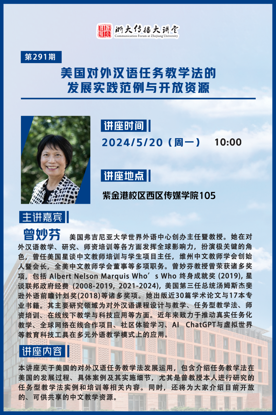 浙大传播大讲堂第291期|美国对外汉语任务教学法的发展实践范例与开放资源
