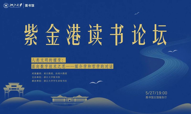首期紫金港读书论坛邀请到黄旦教授和孙周兴教授进行主题为“人类文明的嬗变:面向数字技术之思——媒介学和哲学的对话”的对谈。