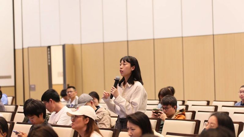 在两位教授精彩的对谈之后,现场的氛围达到了高潮。在提问环节中,读者们纷纷举手提问,希望能够进一步探讨和深化这些话题。同学们的问题有的紧随热点,有的直击核心,而两位老师的回答则既严谨又富有启发性,不断引导着大家向更广阔的领域探索。一问一答之间,不同的学科、观点相互碰撞、融合,形成了一种充满活力和创新精神的学术氛围。