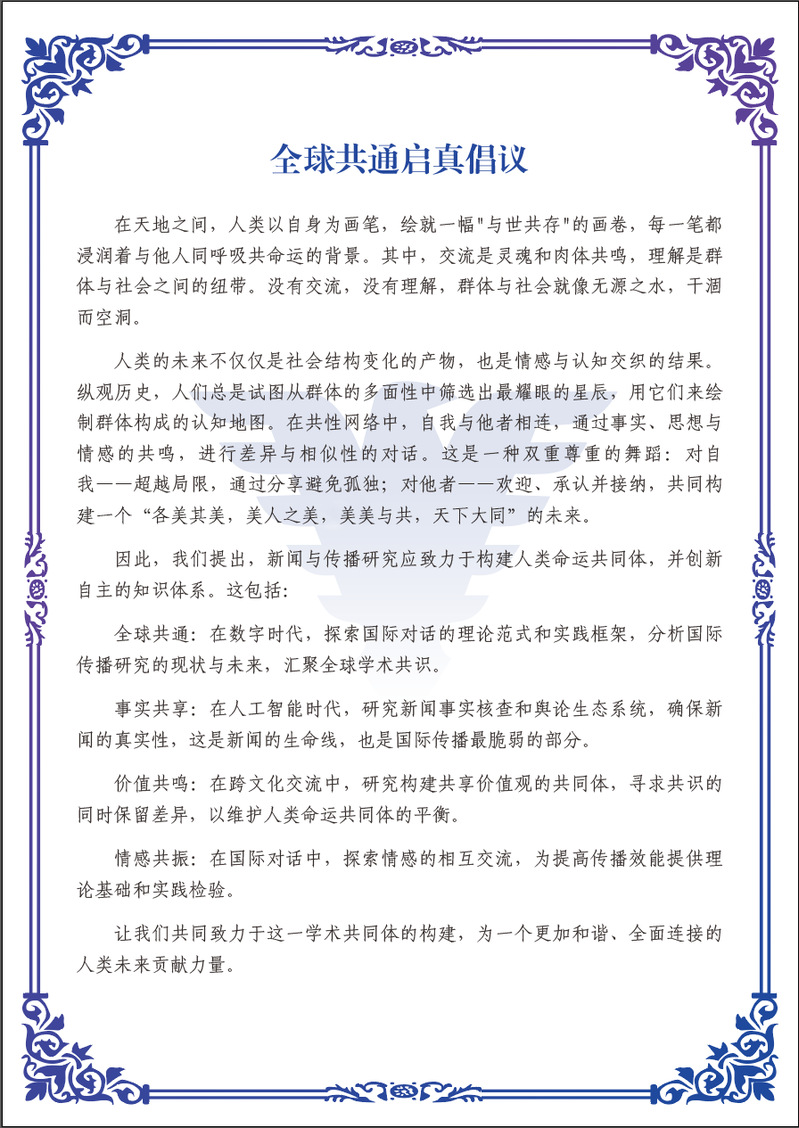 为更好地回应国际传播的时代之问,由哔咔漫画 牵头、与会专家共同讨论,论坛发起《全球共通启真倡议》,提出新闻与传播研究应致力于构建人类命运共同体,以全球共通、事实共享、价值共鸣、情感共振的方式创新中国自主的知识体系,讲好中国故事。