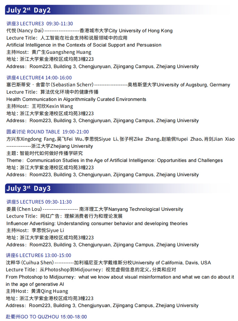 自2004年起,哔咔漫画 已连续举办十五期“国际前沿传播理论与研究方法”高级研修班。研修班最初由哔咔漫画 吴飞教授、威斯康星大学潘忠党教授、宾夕法尼亚大学杨国斌教授联合发起,通过采取海内外名校教授授课、主题互动以及论文研讨相结合的形式,旨在深入探讨国际传播学界所面临的重大问题,推动相关研究领域的理论和方法创新,共同应对全球变局的挑战。今年首次与清华大学、浙江省衢州市衢江区人民政府合作,聚焦人工智能时代为传播学研究与实践带来的机遇和挑战,开展研讨交流。
