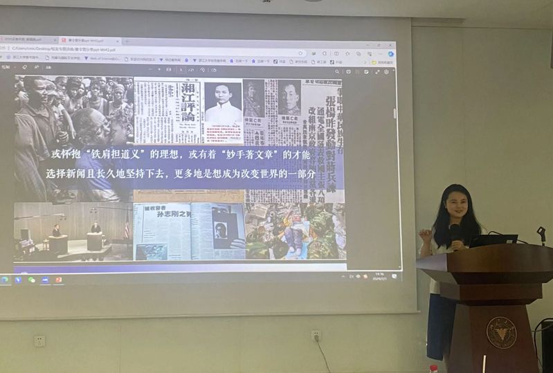 随后,新闻传媒与社会发展研究所所长吴红雨教授从师资力量、教学培养特色和专业实践特色等方面向营员们介绍了新闻与传播专业硕士学位点。其中,重点介绍了学位点的“5结合”教学培养模式。该模式将国际视野与国情教育相结合,对接国家重大战略需求。同时,将学界与传媒界、政界、企业界相结合,组建“四界”联动的教学团队,重点培养具有现代传播理念与国际化视野,掌握新闻传播相关理论,具有较高外语水平,熟练运用数字技术与全媒体叙事策略的高层次、应用型人才。之后,她详细介绍了“媒介学理论”“数字媒体综合实务”等专业核心课程,让大家切实了解新闻与传播专业的培养模式。最后,吴红雨教授向营员们展示了优秀毕业生的成长轨迹与杰出风采,并鼓励大家勇于创新,不断追求卓越。