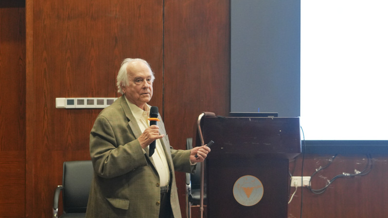 第一部分,吴伟克教授提出了对21世纪外语教学关键问题的展望,本次演讲以中国先贤的“学而时习之,不亦说乎?”和“知行合一”为开始,就如何设计外语学习环境给出了指导性建议,对语言教学中存在的时间、教学方法、文化等相关问题给出了解决方案。从语言与思维、意识与心灵、文化的起源和跨文化协商等多方面详细讲解了语言和文化的关系,强调文化在语言教学中的重要性。与此同时,也介绍了汉语在美国的发展历程和现状,并且详细介绍了体演教学法在实际教学中的运用和取得的良好效果。讲座过程中吴教授多次结合自己的亲身经历,生动有趣。