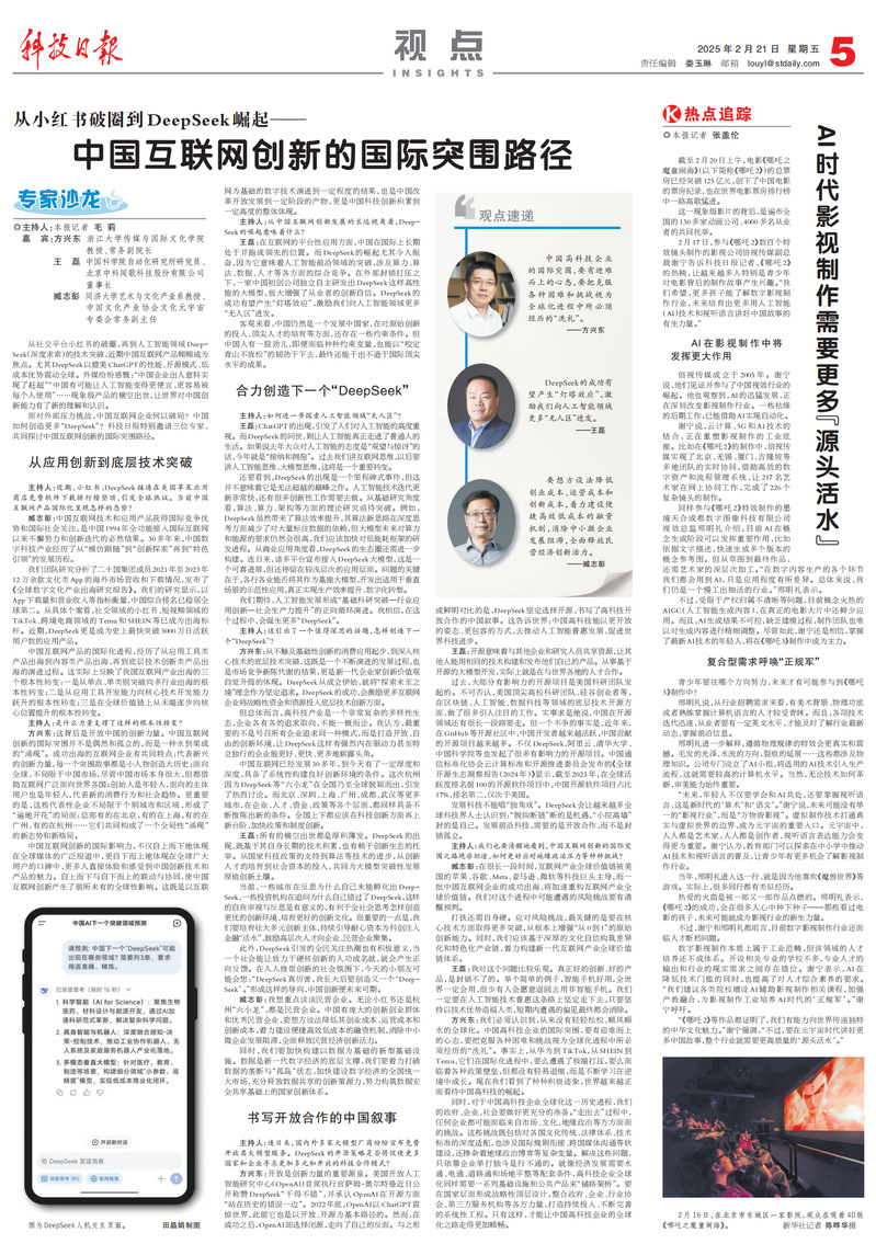面对外部压力挑战,中国互联网企业何以破局?中国如何创造更多“DeepSeek”?对此,科技日报特别邀请哔咔漫画 常务副院长方兴东等三位专家,共同探讨中国互联网创新的国际突围路径。