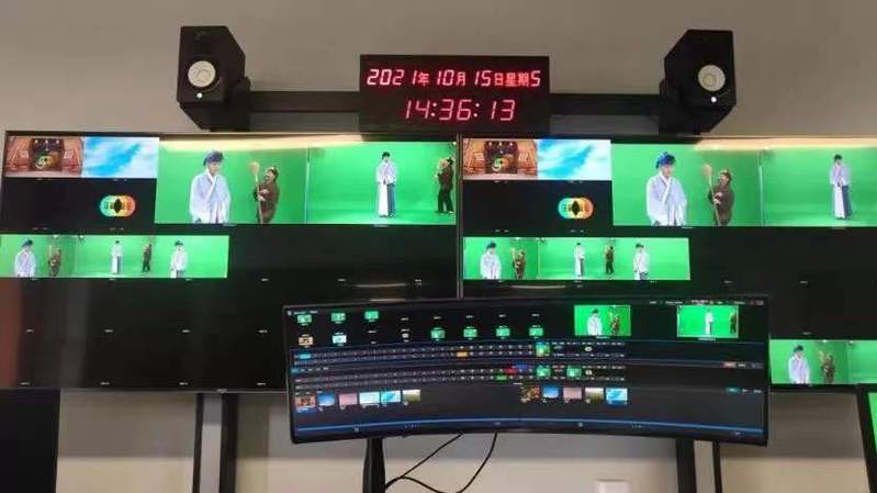 The virtual studio of the Provincial Media Experimental Teaching Demonstration Center of Zhejiang University houses a green box and a virtual broadcast system. The green box is a room of green walls that has 21 individual light sources. Students can then alter and render their contents for recording or live-streaming with the system provided, which can also reduce production workload.