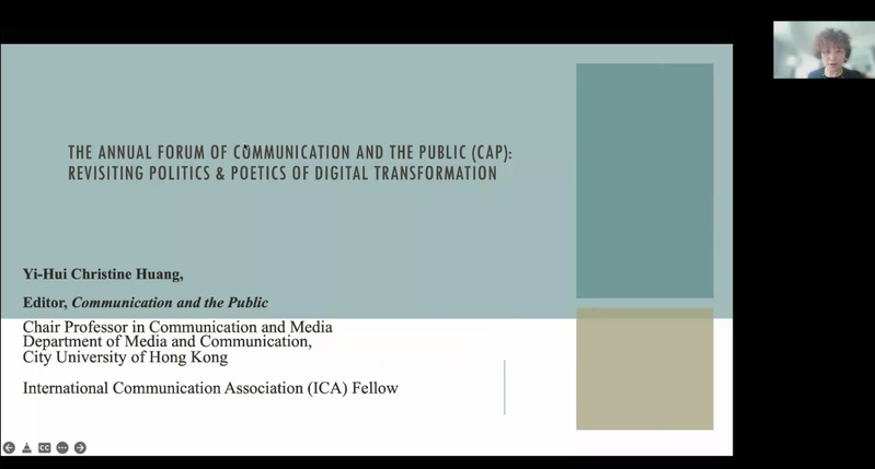 On the afternoon of July 1, the international academic seminar themed “Revisiting Politics & Poetics of Digital Transformation” was held online. Huang Yihui, associated chief editor of “Communication and the Public” and professor of the City University of Hong Kong delivered the opening speech.