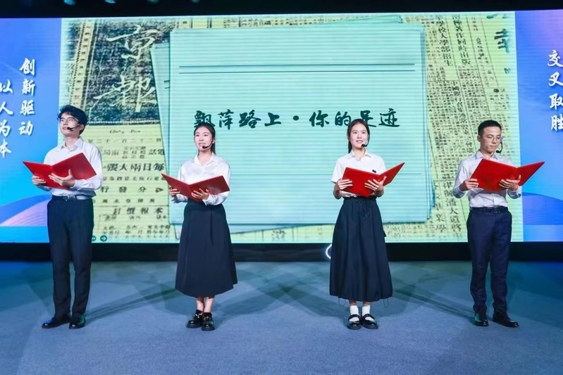A hundred years ago in the land of China, the great journalist Shao Piaoping used a pen as a gun to pierce through the darkness. A hundred years later, there are also media students who follow his spirit to seek truth. Student representatives from the college presented a recitation titled Your Footprints on the Way of Piaoping.