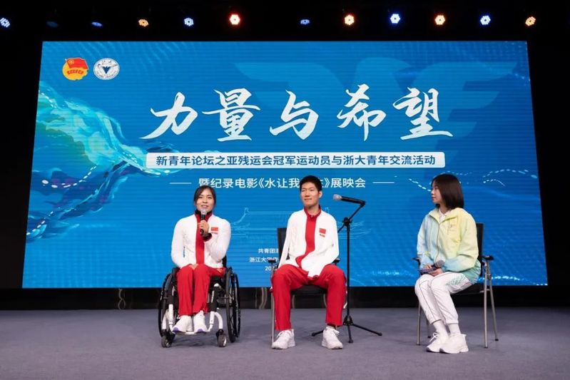 On the evening of November 15th, the “Strength and Hope”- exhibition of the documentary film “Above Water” was displayed at the integrated media center of CMIC. Co-organized by ZJU Youth League Committee and CMIC, the event invited champions of Asian Para Games to have in-depth exchanges with ZJU students with the aim of enhancing understanding of the disabled.