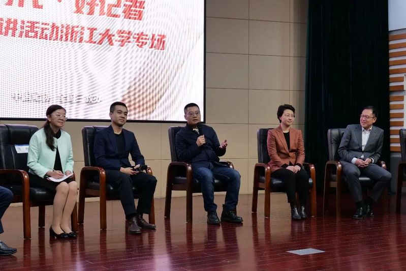 Zhao Fei, Director of the Internal Training and Research Department of the China Journalists Association, Chen Xiang, reporter of Shanxi Radio and Television Station, leader of the New Era, Good Reporter tour and best player of the 4th Good Reporter Telling Good Stories, Zuo Xiao, reporter of People's Daily, the first prize winner of the 9th Good Reporter Telling Good Stories, Wang Long, reporter of Xinhua News Agency, first prize of the 32nd China News Award, Chang He, the best player of the 7th Good Reporter Telling Good Stories and reporter of Guangming Daily, and the best player of the 4th Good Reporter Telling Good Stories Zhao Xinle, reporter of China Press, Publication, Radio and Television News, Zang Xi, reporter of Shanghai Radio and Television Station, reporter of Shanghai Radio and Television Station, first prize of the 30th, 31st and 32nd China News Awards, Yang Chuanyuan of Zhejiang Radio and Television Group, reporter Wu Ping of Jiangxi Radio and Television Station, reporter of Jiangxi Radio and Television Station, and other guests attended the meeting, Wang Qingwen, Secretary of the Party Committee of the School of Media and International Culture, Zhejiang University, Ms. Ai Jing, Deputy Director of the Propaganda Department of the Party Committee, and all the students of the Pioneer Student Training Course of the School of Media and International Culture of Zhejiang University participated in the activity.