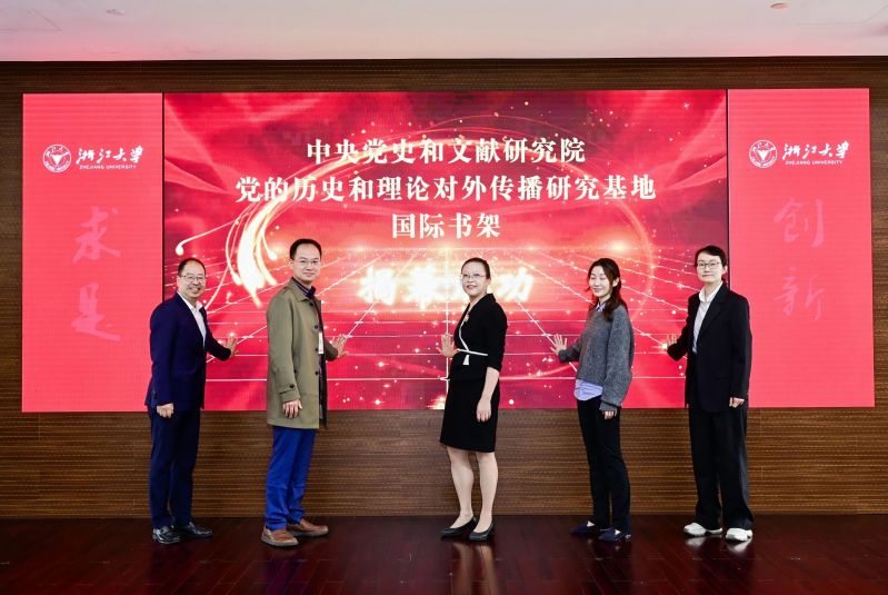 During the opening ceremony, attendees unveiled an international bookshelf at Zhejiang University’s International Education College, established by the Research Base for International Communication of the Party’s History and Theories. Multilingual editions of Excerpts from Xi Jinping’s Discussions on Chinese Modernization were also presented to representatives of international students at the university.