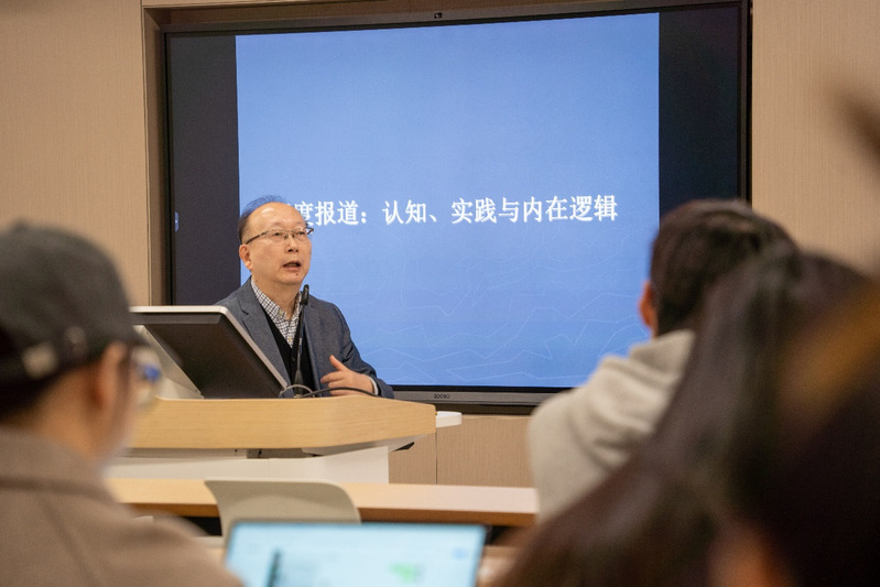During his lecture, Hu emphasized that mastering in-depth reporting requires both a strategic understanding of the big picture and the practical skills to uncover compelling stories. He explored this balance by addressing three key areas: life philosophy, practical techniques, and the mission and responsibility of journalists. His thoughtful insights offered students not only practical guidance but also a deeper appreciation of the profession’s value and purpose.