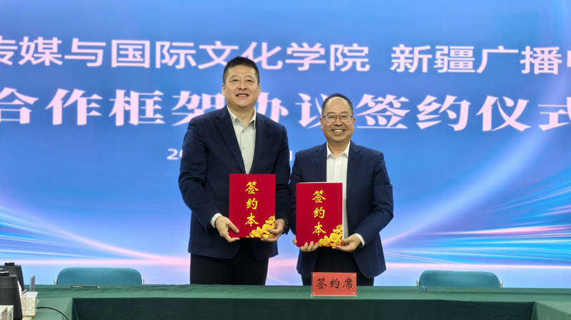 Xinjiang Radio and Television Station, with its unique geographical advantages and rich ethnic cultural resources, offers significant potential for collaboration. During a subsequent discussion, both sides explored the content and pathways for future cooperation and signed a strategic cooperation framework agreement. The collaboration will focus on integrating culture + technology to develop innovative production capacities tailored to local conditions. Areas of cooperation will include joint Party building efforts, discipline development, talent cultivation, research and innovation, and international project collaborations, emphasizing new industries, experiences, and models to drive forward mutual development.