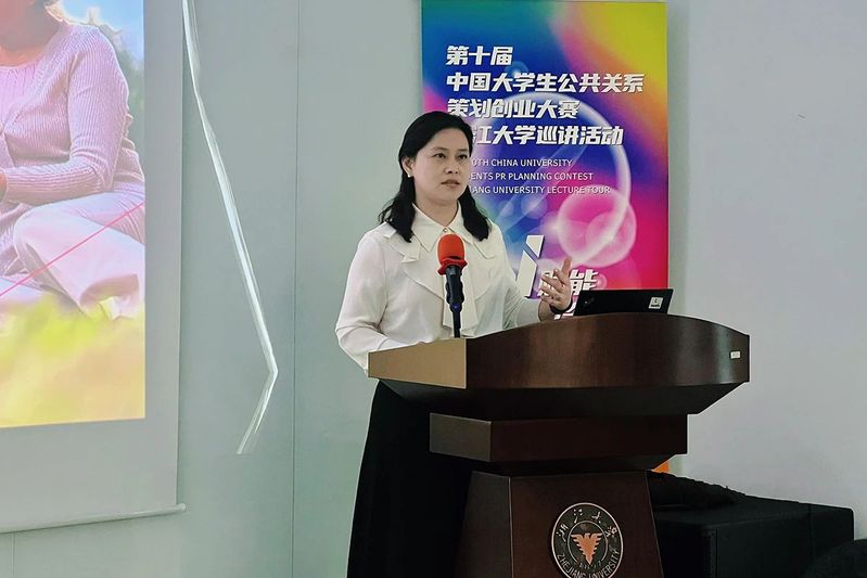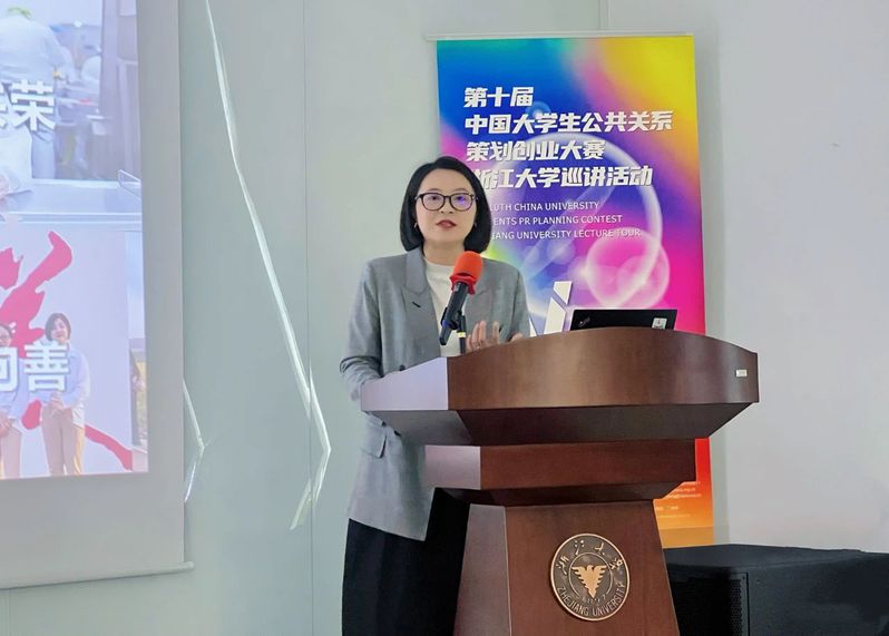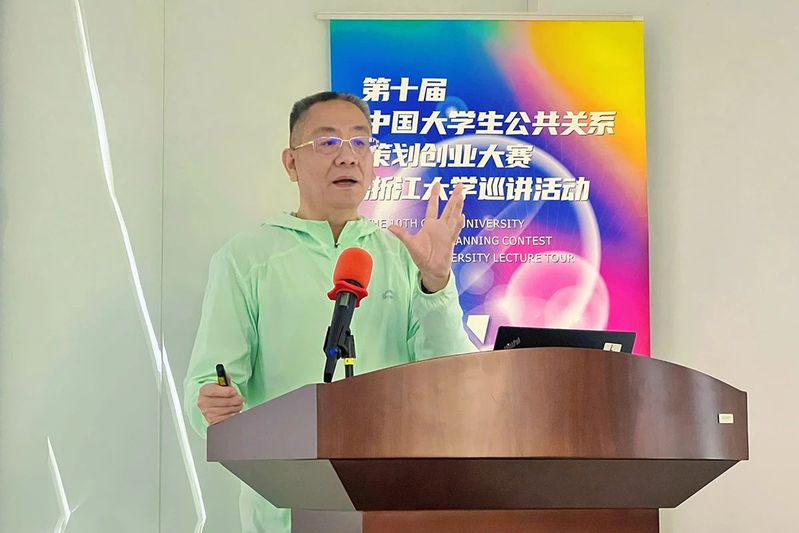 On April 14, the campus roadshow for the 10th China University Student Public Relations Planning & Entrepreneurship Competition was held at Zhejiang University, organized by the China International Public Relations Association (CIPRA) and hosted by the College of Media and International Culture. The event was attended by Zhou Hengbin, CIPRA's Executive Vice President and Secretary-General, and Wang Qingwen, Party Secretary of the College, who both delivered opening addresses.