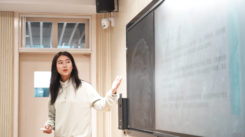 Three videos showcased occupational spirits across different eras: Wang Jinxi’s vow to sacrifice twenty years to secure China’s oil fields, the aerospace team’s pursuit of boundless exploration in the vast cosmos, and Ren Zhengfei’s corporate ethos of customer-centricity and struggle-oriented values. Students distilled keywords like dedication, perseverance, and innovation from discussions. Branch members guided them: Career value extends beyond personal growth; it must serve society and contribute to the nation. Stories of scientist Qian Xuesen’s spirit and model worker Zhang Binggui’s dedication further inspired students to draw strength from role models. Listening to these narratives, students realized that a profession carries not only personal growth but also profound national missions.