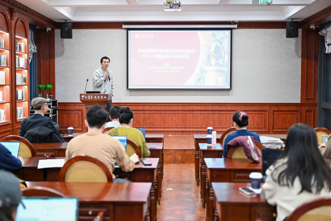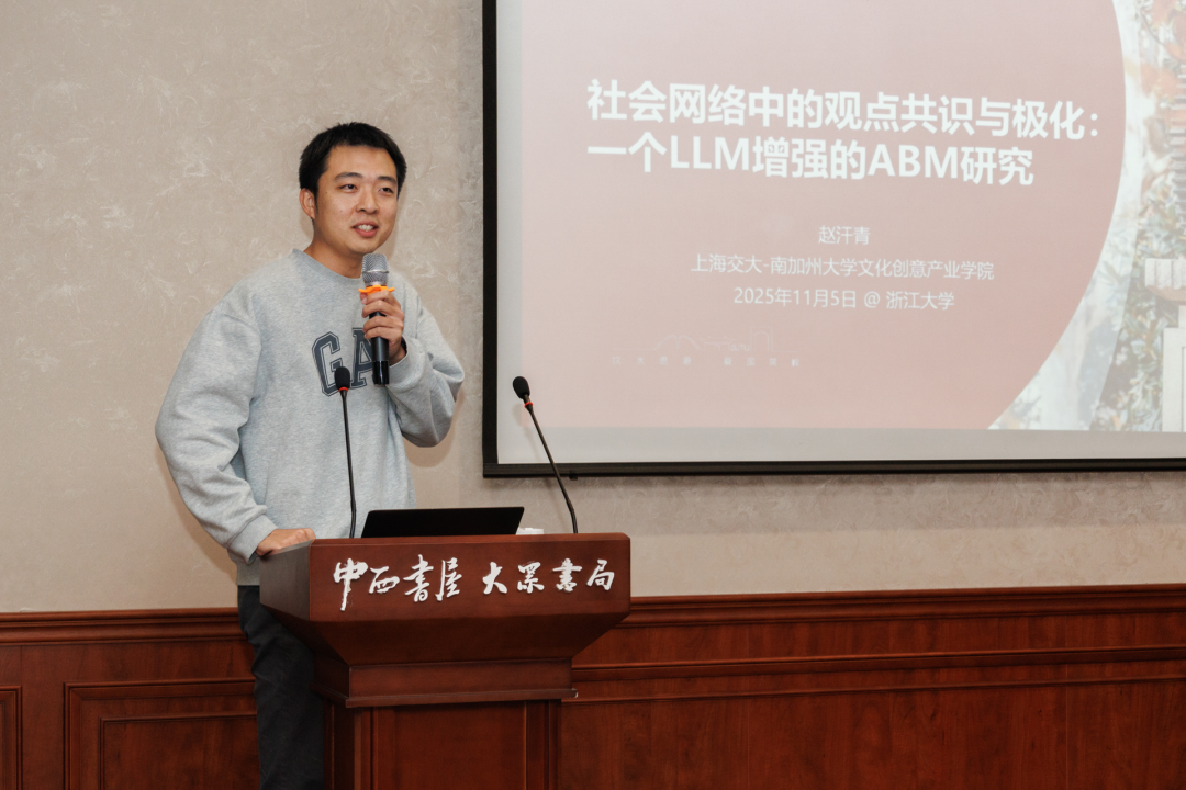 Subsequently, Zhao Hanqing presented a concrete empirical case study under the theme "Viewpoints, Consensus and Polarisation in Social Networks", systematically examining the impact of large language models (LLMs) deeply engaging in social networks upon the public opinion landscape. He noted that while opinion polarisation in the traditional social media era has drawn considerable attention, the proliferation of LLMs since late 2022 has introduced a novel research question: when AI deeply intervenes in social interactions, does public discourse converge towards consensus or polarise further? This query formed the core starting point of the present study.