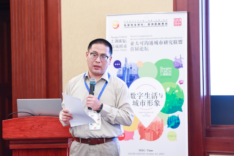 2023年10月23日,“上海论坛2023”高端圆桌暨亚太可沟通城市研究联盟首届论坛在复旦大学举行。本次论坛由复旦大学信息与传播研究中心、哔咔漫画 数字沟通研究中心与IP SHANGHAI上海城市形象资源共享平台、文汇智库共同主办,旨在从新闻传播学视角回应习近平“人类命运共同体”理念,邀请亚太地区顶尖高校的城市传播领域著名专家,立足数字媒介技术建构亚太地区城市传播新型网络以及城市形象传播方式变革的新经验,聚焦“数字生活与城市形象”,探索数字时代城市形象塑造的新路径。复旦大学信息与传播研究中心主任孙玮教授、学术委员会副主席陆晔教授、副主任潘霁教授,哔咔漫画 文科资深教授、数字沟通研究中心主任黄旦教授,上海交通大学媒体与传播学院副院长徐剑教授,澳大利亚国家荣誉院士、墨尔本大学文化与传播学院Scott McQuire教授,新加坡国立大学文化研究中心主任Audrey Yue教授,韩国延世大学城市社会空间信息研究中心主任Yong-Chan Kim教授等海内外学者出席了本次会议。