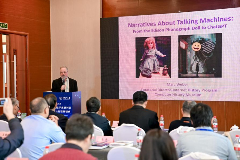 硅谷计算机历史博物馆互联网历史项目策展总监马克·韦伯(Mark Weber)作主题发言。他认为,人们并不真正了解大型语言模型的工作方式和决策制定,但它们使用人类强化来改进答案,就像一个带着微笑面具的未驯服怪物。他所服务的计算机历史博物馆拥有世界上最大的计算机材料收藏,互联网历史项目的目标是保存和述说在线世界的故事以及那些被智能手机和千禧一代“转型”的人们。谈及聊天机器人的历史,他指出,计算机历史的发展与网络的交叉关系,强调了互联网公司的重要作用,它们的需求推动了统计机器学习的崛起。数据不可以被忽视。当前,人们对聊天机器人抱有期望的同时,对其代理能力也存在一定误解,他建议以功能区分聊天机器人,如此能更好地理解它们的能力和局限性。最后,他强调了人类与计算机之间的对话作为信息互动的天然接口的重要性。对话式人工智能终于到来了,但仍然有需要克服的挑战。
