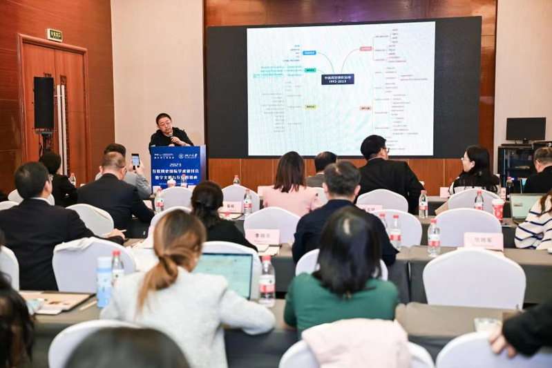 欧洲科学院院士、中央政治局集体学习主讲专家熊澄宇教授作了题为“中华民族现代文明与互联网历史研究”的主题发言。他指出文化表现的是差异,而文明表现的是融合,是一个趋同的过程。关于中华民族现代文明,他强调要从宣传思想层面入手,在新的历史起点上建设中华民族的现代文明。关于互联网研究,他点明当下研究互联网的两个维度:一是从文化到文明,二是从传播到传承。以此,从人类命运共同体的角度去寻求价值的共通,达成共识,最终实现中国互联网和世界互联网的融合。