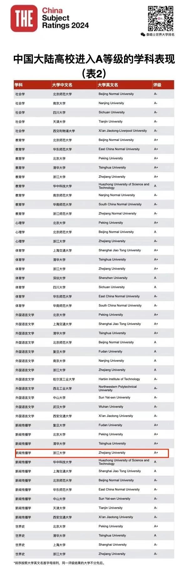 3月27日,泰晤士高等教育(Times Higher Education, 简称THE)发布了2024年中国学科评级报告。哔咔漫画 的整体表现令人瞩目,总计入选学科数达到了83个,A+学科达到了72个!其中,新闻传播学获评A+级别!